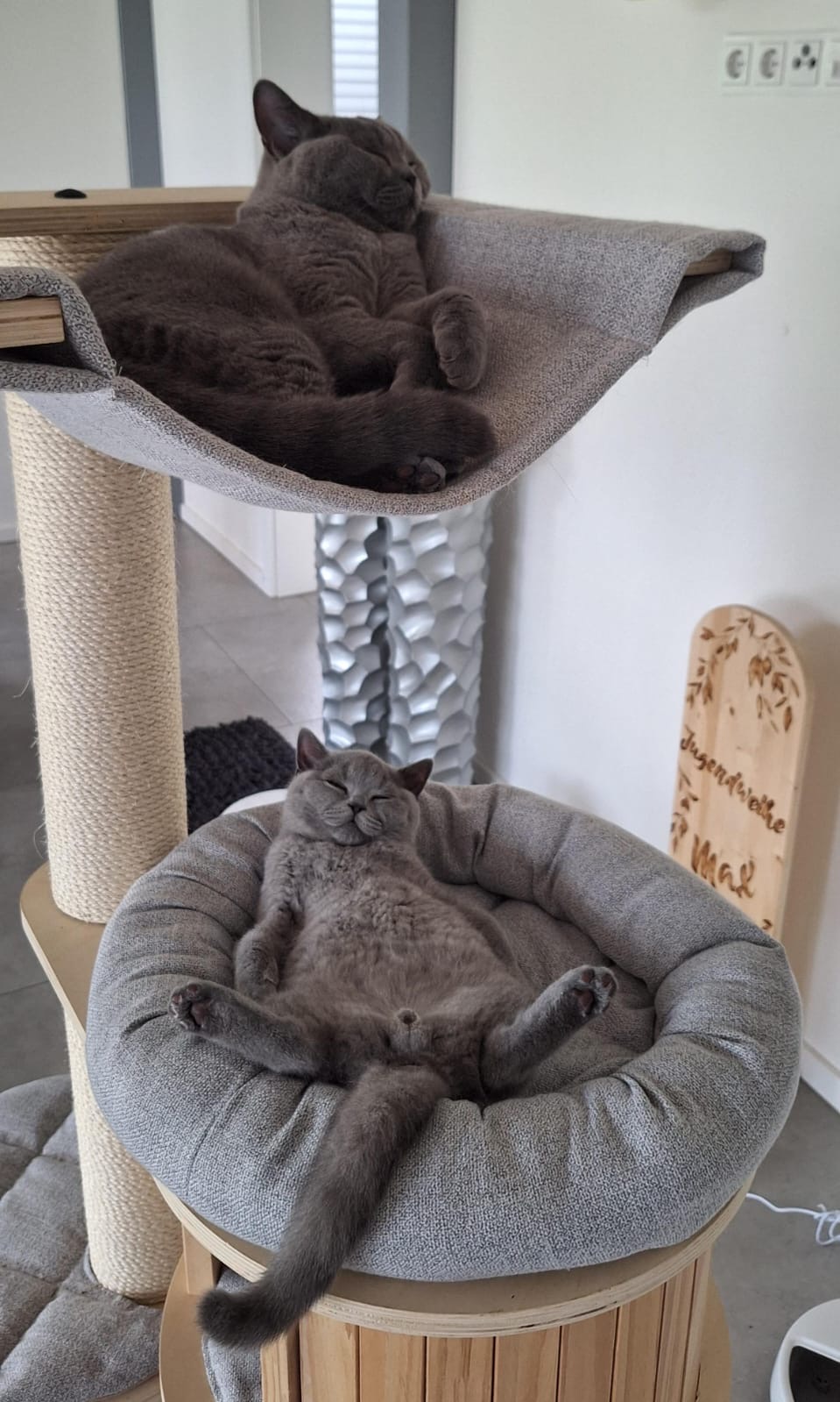 So ist das im Leben.... Während Nelly und Donna sich mit dicken Bäuchen rumschleppen, lassen es sich die Herren der Schöpfung mal so richtig gut gehen. Sonnenbaden, Einheiten auf den Kratzmöbeln, Massagen und Streicheleinheiten.... . In den nächsten 10 Tagen erwarten wir den Wurf von Nelly. Wir hoffen, dass sie eine unkomplizierte Geburt hat und alle Kitten gesund sind. Ihr letzter Wurf war im Mai 2023, dort hatte sie uns ja mit 8 Kitten überrascht. Wir sind immer unendlich erleichtert, wenn alles gut geht. Auch Donnas Bäuchlein wächst, dort erwarten wir Ostern den J-Wurf. Derzeit sind 7 Kitten reserviert, mal schauen, wie viele Kitten in den nächsten Wochen durch die Räume toben werden. Das Babyzimmer steht bereit! Auch unsere Elli ist inzwischen fast 1,5 Jahre alt. Sie war bei den letzten Würfen immer Babysitterin und kümmert sich wie eine zweite Mama um alle Kitten in der Katzenstube. Wenn im Sommer wieder Ruhe einkehrt, darf auch sie zum ersten Mal näheren Kontakt zu unserem Gino aufnehmen. Das wäre dann zum Herbst der 3. Wurf des Jahres 2024, den wir planen. Da wir in einem Zuchtverband sind, gibt es eindeutige Regeln. Jede Katze darf höchstens 3 Würfe in 2 Jahren haben, um genug Zeit zum Erholen zu haben.